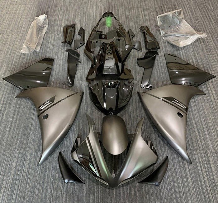 Previous Product Next ProductBlack, Matte Gray Fairing Kit for a 2012, 2013 & 2014 Yamaha YZF-R1 motorcycle.