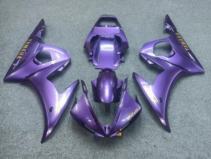 Previous Product Next ProductPurple, Gold Fairing Kit for a 2003 & 2004 Yamaha YZF-R6 motorcycle.