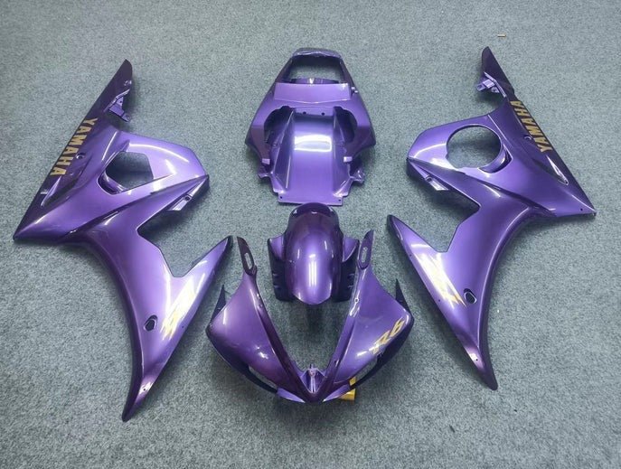 Previous Product Next ProductPurple, Gold Fairing Kit for a 2005 Yamaha YZF-R6 motorcycle.