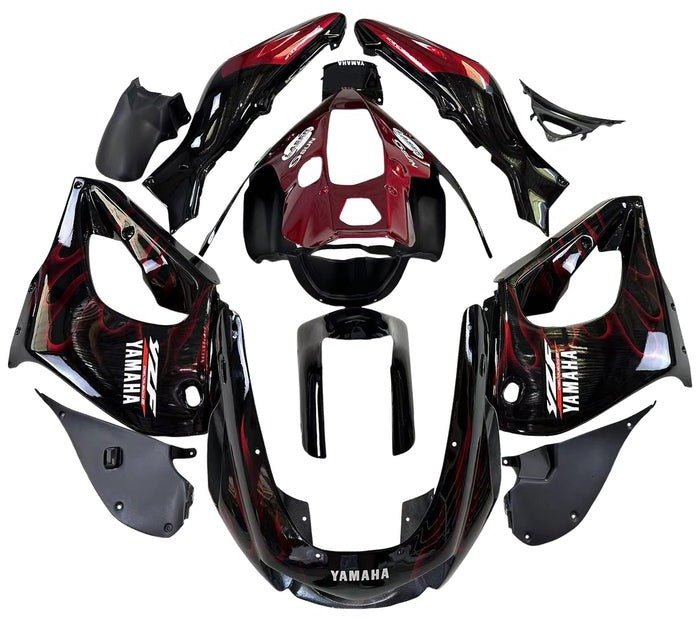 Previous Product Next ProductBlack, Dark Red Flames Fairing Kit for a 1996, 1997, 1998, 1999, 2000, 2001, 2002, 2003, 2004, 2005, 2006 & 2007 Yamaha YZF1000R motorcycle. Please note that the 1996-2007 Yamaha YZF100R fairing kit is Compression Molded and may need minor modifications during installation for proper fitment.