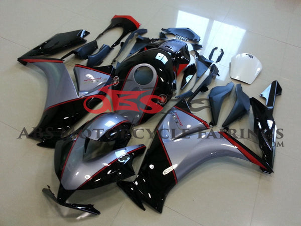 Black, Gray and Red Fairing Kit for a 2012, 2013, 2014, 2015 & 2016 Honda CBR1000RR motorcycle.