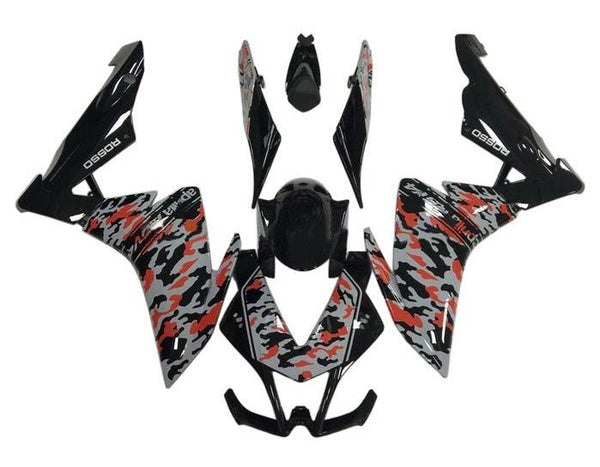 Black, Gray, Red, Camouflage Fairing Kit for a Aprilia RSV4 1000 motorcycle for years 2009, 2010, 2011, 2012, 2013, 2014, 2015.