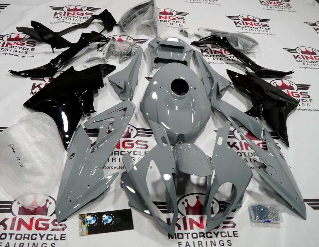 Nardo Gray and Black Fairing Kit for a 2017 and 2018 BMW S1000RR motorcycle.
