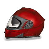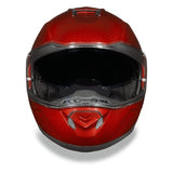 Kings Dark Red Daytona Glide Modular Helmet with an Inner Anti-Scratch Retractable Smoke Shield exceeds D.O.T. FMVSS 218 Standards. This Modular Helmet comes in a Clear Lacquer Finish. Features A Dual Shield System; Outer Anti-Scratch Clear Shield With Pinlock 30 Lens (Anti-Fog) and Inner Anti-Scratch Retractable Smoke Shield. Also Has A Quick Release Lock Retention System; One Finger Release Lever for Easy Detachment, Adjustable Chin and Forehead Ventilation and a Removable, Hand Washable Interior (Moisture Wicking Fabric). Bluetooth Ready. Also available in Matte Black, Neon Yellow, Gray, Gloss Black, White & Silver. Free Head Wrap And Draw String Bag Included. Sizes Range From XS-4XL (reference size guide).