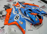 Light Blue and Orange Gulf Fairing Kit for a 2007, 2008, 2009, 2010, 2011, 2012, 2013 & 2014 Ducati 848 motorcycle.