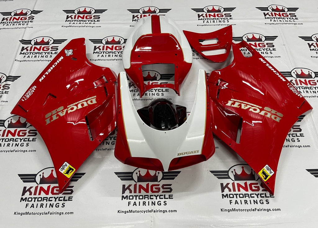 Red, White, Black and Gold Pinstripe Fairing Kit for a 1994, 1995, 1996, 1997, 1998 & 1999 Ducati 916 motorcycle.