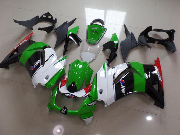 Green, White, Black and Red ELF Fairing Kit for a 2008, 2009, 2010, 2011, 2012, 2013 Kawasaki Ninja 250R motorcycle.