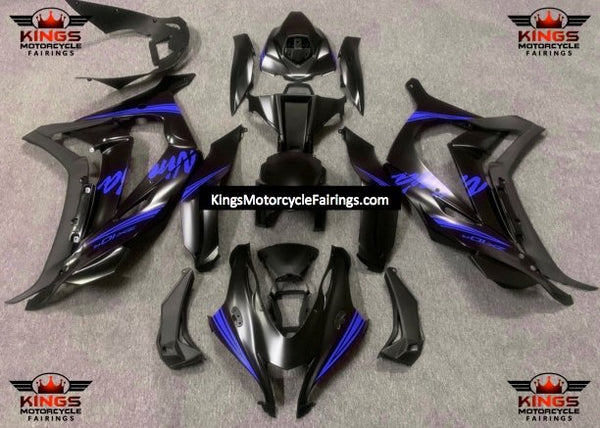 Satin Black and Blue Fairing Kit for a 2016, 2017, 2018, 2019 & 2020 Kawasaki Ninja ZX-10R motorcycle.