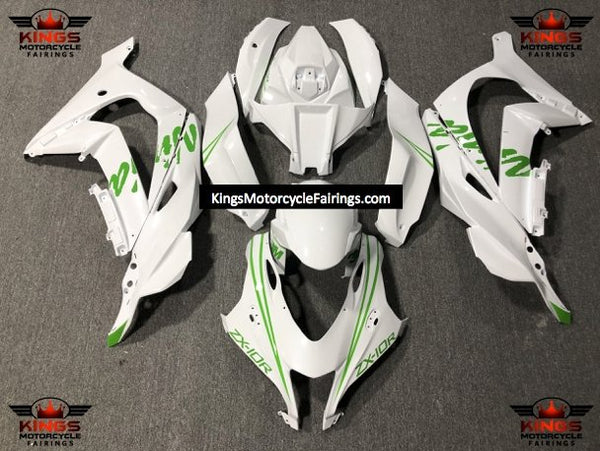 White and Green Fairing Kit for a 2016, 2017, 2018, 2019 & 2020 Kawasaki Ninja ZX-10R motorcycle.