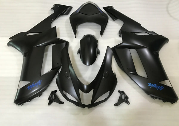 Matte Black and Blue Fairing Kit for a 2007 & 2008 Kawasaki Ninja ZX-6R 636 motorcycle.