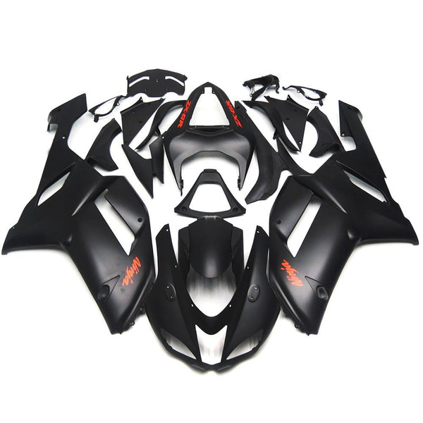 Matte Black and Red Fairing Kit for a 2007 & 2008 Kawasaki Ninja ZX-6R 636 motorcycle.