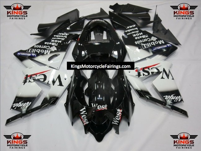 Black and White West Fairing Kit for a 2004 & 2005 Kawasaki ZX-10R motorcycle.