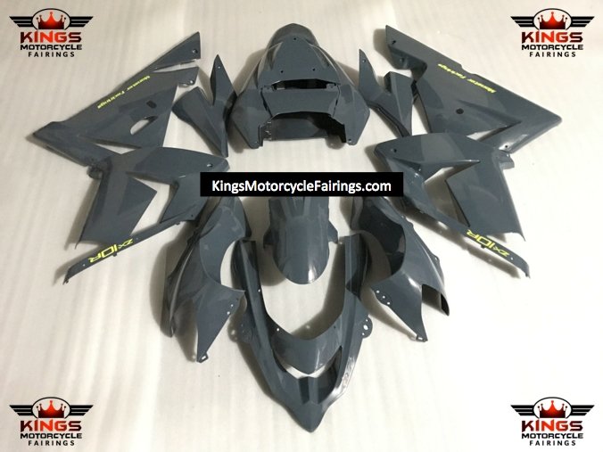 Dark Nardo Gray and Yellow Fairing Kit for a 2004, 2005 Kawasaki ZX-10R motorcycle.