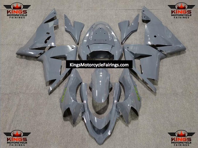 Nardo Gray and Green Fairing Kit for a 2004 & 2005 Kawasaki ZX-10R motorcycle.