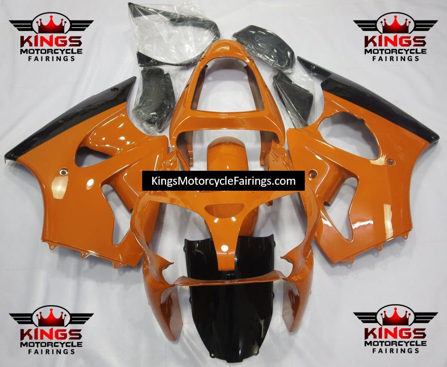 Orange and Black Fairing Kit for a 2000, 2001 & 2002 Kawasaki ZX-6R 636 motorcycle.