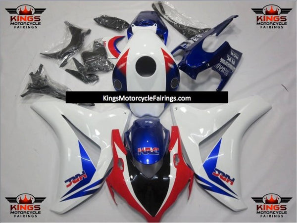 White, Red, Blue and Black HRC Fairing Kit for a 2008, 2009, 2010 & 2011 Honda CBR1000RR motorcycle.
