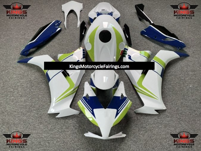 White, Blue and Green Fairing Kit for a 2012, 2013, 2014, 2015 & 2016 Honda CBR1000RR motorcycle.