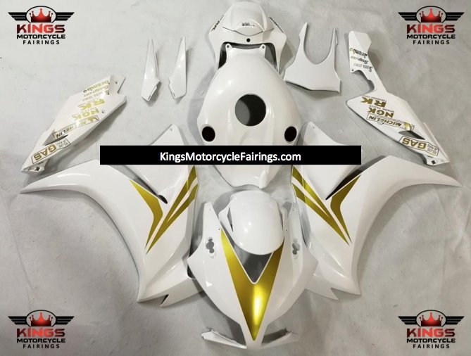 White and Gold Fairing Kit for a 2012, 2013, 2014, 2015 & 2016 Honda CBR1000RR motorcycle.