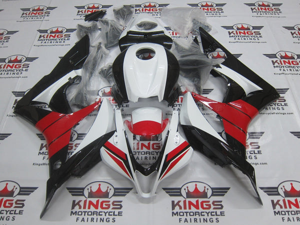 White, Red and Black Fairing Kit for a 2007 and 2008 Honda CBR600RR motorcycle.