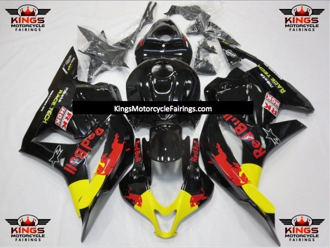 Black, Red and Yellow RedBull Fairing Kit for a 2009, 2010, 2011 & 2012 Honda CBR600RR motorcycle.