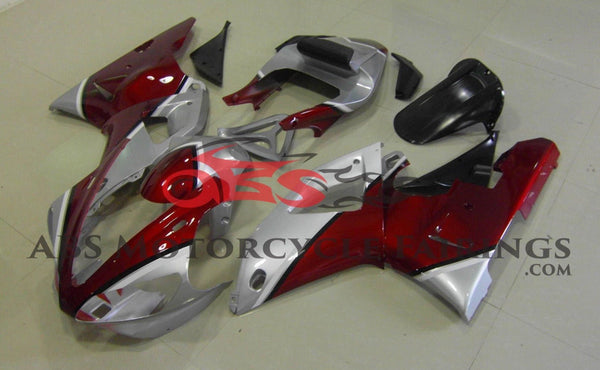 Candy Apple Red and Silver Fairing Kit for a 2000 & 2001 Yamaha YZF-R1 motorcycle.