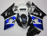 Blue, Black, Dark Blue and White Fairing Kit for a 2003 & 2004 Suzuki GSX-R1000 motorcycle.