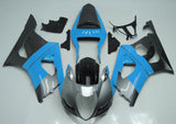 Blue, Silver and Black Fairing Kit for a 2003 & 2004 Suzuki GSX-R1000 motorcycle.