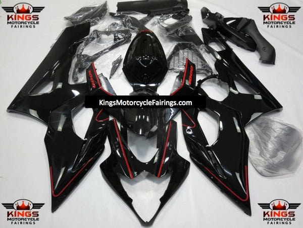 Black and Red Pinstripe Fairing Kit for a 2005 & 2006 Suzuki GSX-R1000 motorcycle.