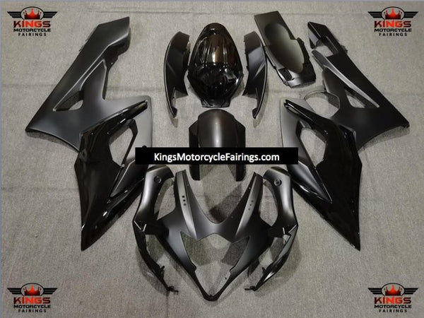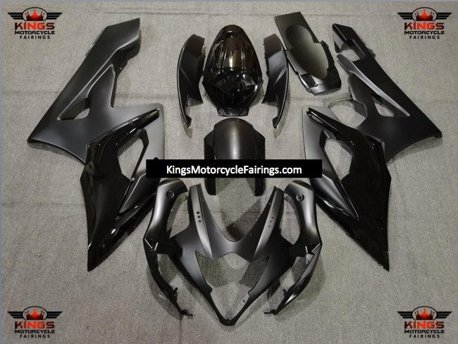 Matte Black and Gloss Black Fairing Kit for a 2005 & 2006 Suzuki GSX-R1000 motorcycle.