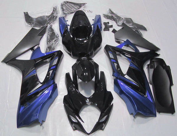 Black, Blue and Silver Fairing Kit for a 2007 & 2008 Suzuki GSX-R1000 motorcycle.