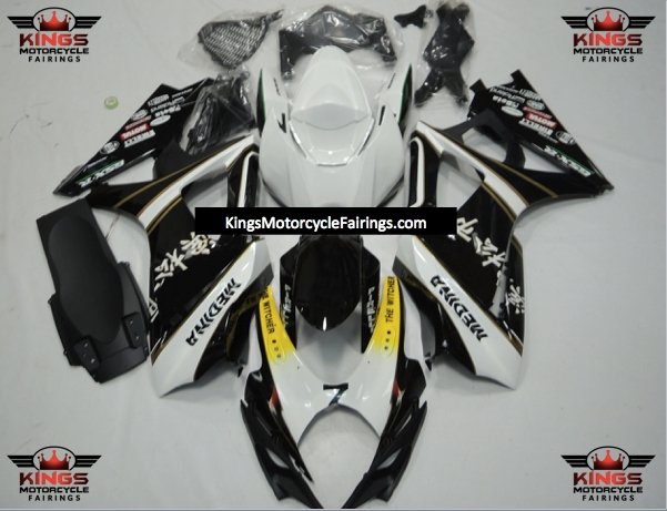 Black and White Medina Fairing Kit for a 2007 & 2008 Suzuki GSX-R1000 motorcycle.