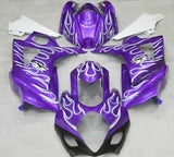 Purple and White Flame Fairing Kit for a 2007 & 2008 Suzuki GSX-R1000 motorcycle.
