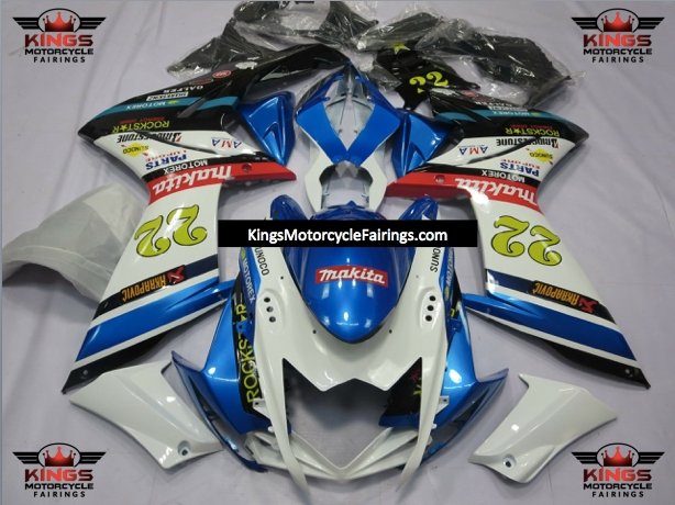 Suzuki GSXR1000 (2007-2008) White & Blue Makita 22 Fairings