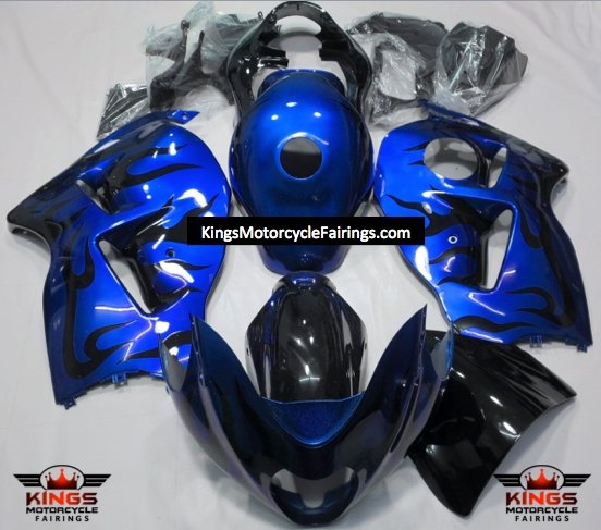 Blue and Black Flame Fairing Kit for a 1999, 2000, 2001, 2002, 2003, 2004, 2005, 2006, & 2007 Suzuki GSX-R1300 Hayabusa motorcycle.