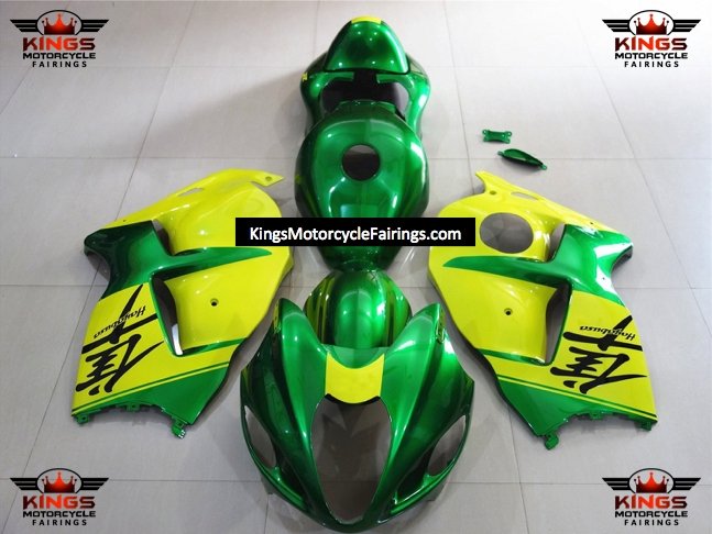 Green and Yellow Fairing Kit for a 1999, 2000, 2001, 2002, 2003, 2004, 2005, 2006, & 2007 Suzuki GSX-R1300 Hayabusa motorcycle.