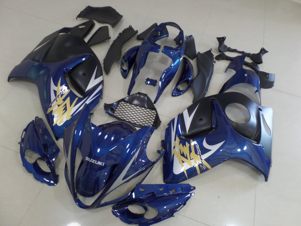 Navy Blue, Matte Black, Gold and Silver Fairing Kit for a 2008, 2009, 2010, 2011, 2012, 2013, 2014, 2015, 2016, 2017, 2018 & 2019 Suzuki GSX-R1300 Hayabusa motorcycle.