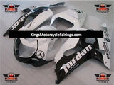 White and Black Jordan Fairing Kit for a 2000, 2001, 2002 & 2003 Suzuki GSX-R600 motorcycle.