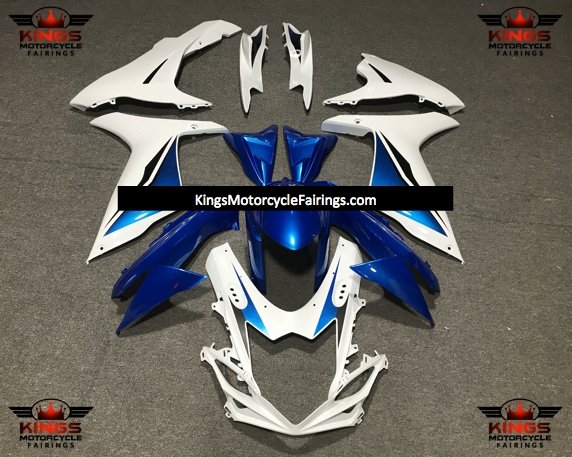 White and Blue Fairing Kit for a 2011, 2012, 2013, 2014, 2015, 2016, 2017, 2018, 2019, 2020, 2021, 2022 & 2023 Suzuki GSX-R600 motorcycle.