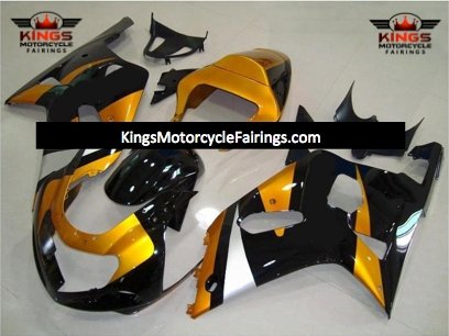 Gold, Black and Silver Fairing Kit for a 2000, 2001, 2002 & 2003 Suzuki GSX-R750 motorcycle.