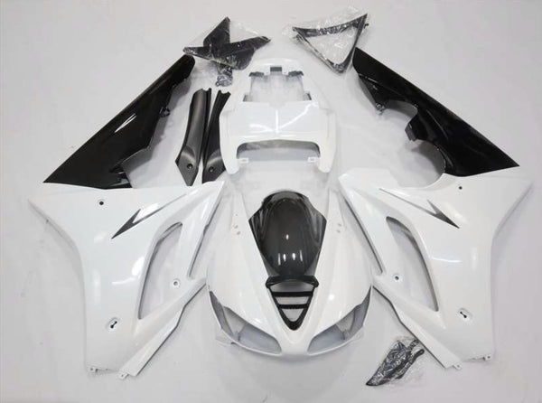 White and Black Fairing Kit for a 2009, 2010, 2011 & 2012 Triumph Daytona 675 motorcycle.