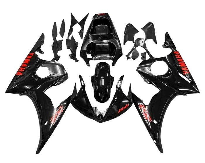 Black, Red Fairing Kit for a 2003 & 2004 Yamaha YZF-R6 motorcycle.