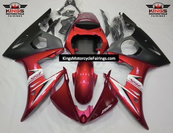 Red, Matte Black, White and Silver Fairing Kit for a 2005 Yamaha YZF-R6 motorcycle.