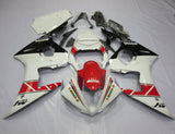 White, Red and Black Fairing Kit for a 2005 Yamaha YZF-R6 motorcycle.