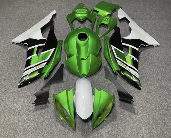Green, White and Black Fairing Kit for a 2008, 2009, 2010, 2011, 2012, 2013, 2014, 2015 & 2016 Yamaha YZF-R6 motorcycle.
