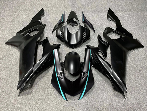 Matte Black and Turquoise Blue Fairing Kit for a 2017, 2018, 2019, 2020, 2021, 2022 Yamaha YZF-R6 motorcycle.